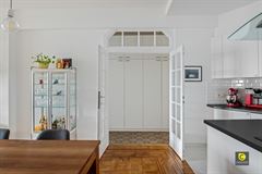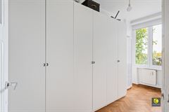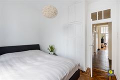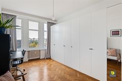 Verder beschikt het appartement over drie volwaardige slaapkamers, elk met een aangename lichtinval en authentieke charme. De oorspronkelijke parketvloer en art-decotegels benadrukken het tijdloze karakter van deze woning. De badkamer is voorzien van een dubbele lavabo, een ruim ligbad en aansluitingen voor wasmachine en droogkast. Een apart toilet en ingemaakte kasten zorgen voor extra comfort en praktische bergruimte.