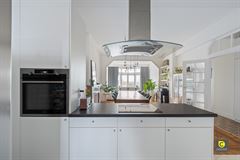 De ruime leefruimte vormt het kloppend hart van de woning en baadt in natuurlijk licht dankzij de hoge ramen en zuidgerichte oriëntatie. Van hieruit geniet je van een prachtig open uitzicht over de omgeving. De open keuken sluit harmonieus aan bij de leefruimte en is volledig uitgerust met moderne inbouwtoestellen, ideaal voor wie graag kookt en gasten ontvangt in een gezellige setting.