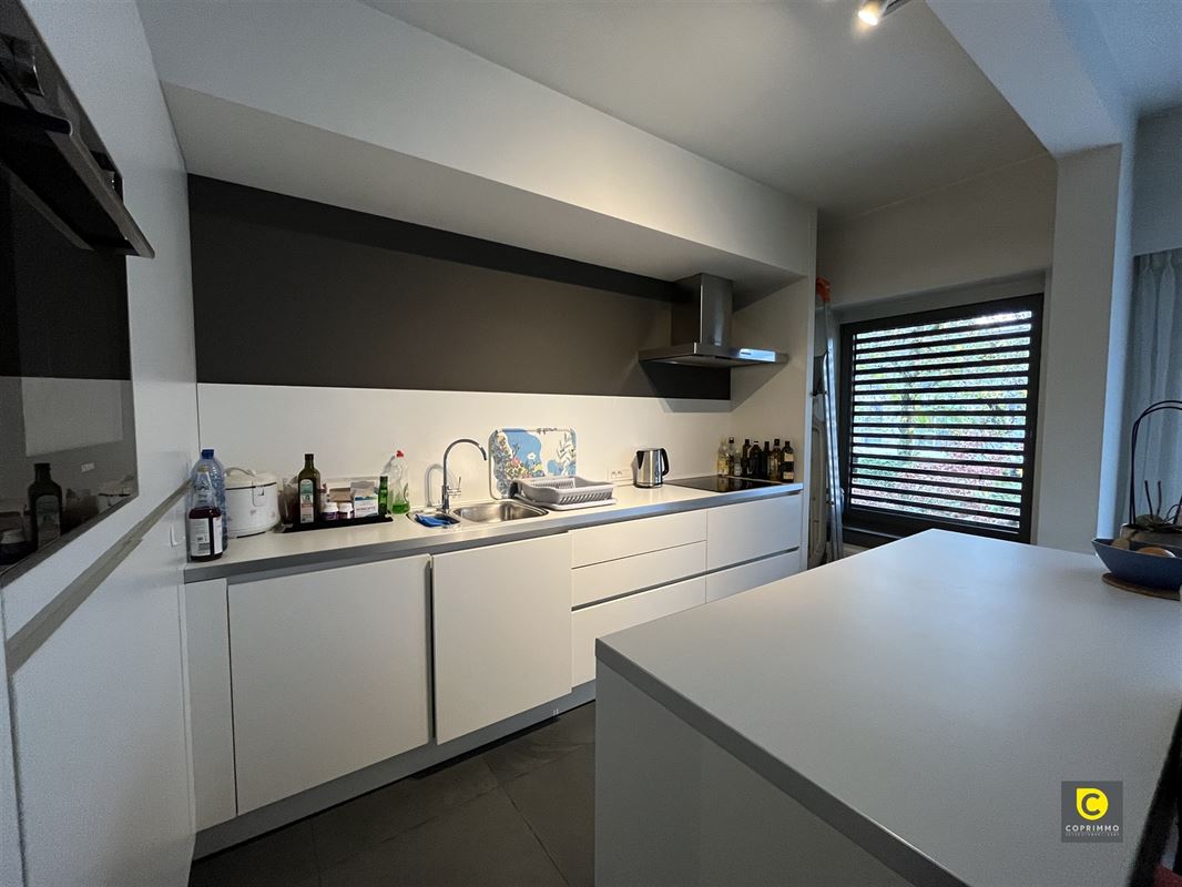 De open keuken is volledig uitgerust en voorzien van een ingebouwde oven, koelkast, vaatwasser en keramisch kookvuur.