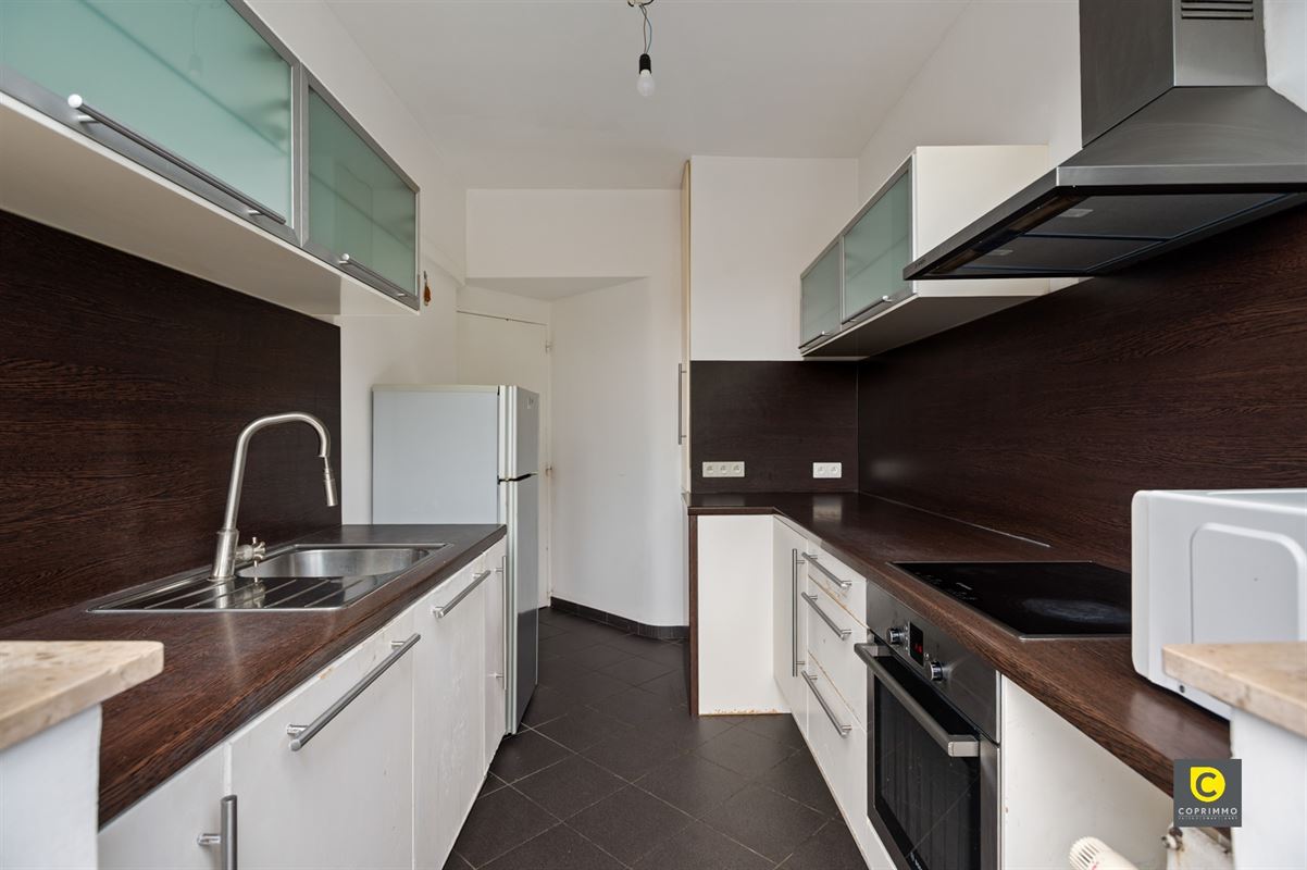 Lichte, ruime leefruimte met grote ramen. Aansluitend een ingerichte keuken (oven, spoelbak, inductiekookplaat, vaatwasser) met toegang tot een gezellig terras. Badkamer is voorzien van een toilet, lavabo en inloopdouche met aangrenzend de tweede volwaardige slaapkamer.