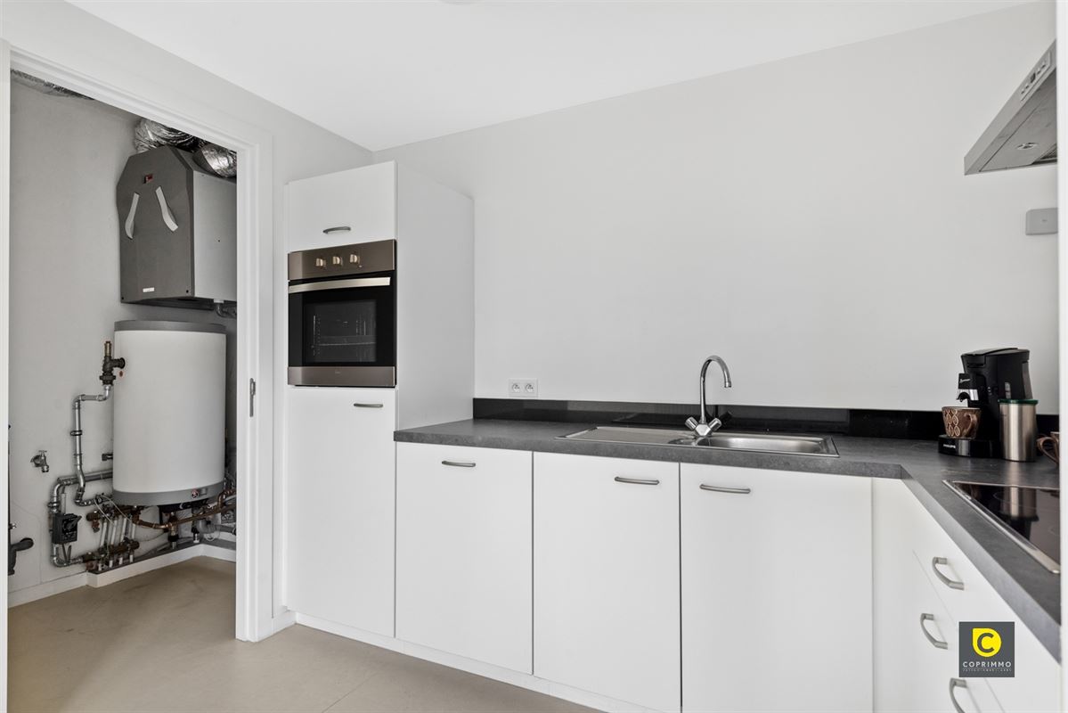De woonkamer sluit naadloos aan op een gezellige keuken die volledig is uitgerust met moderne toestellen. Ideaal voor zowel kookliefhebbers als voor zij die graag gezellig met vrienden en familie dineren.
