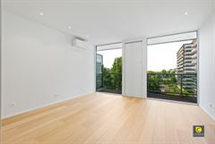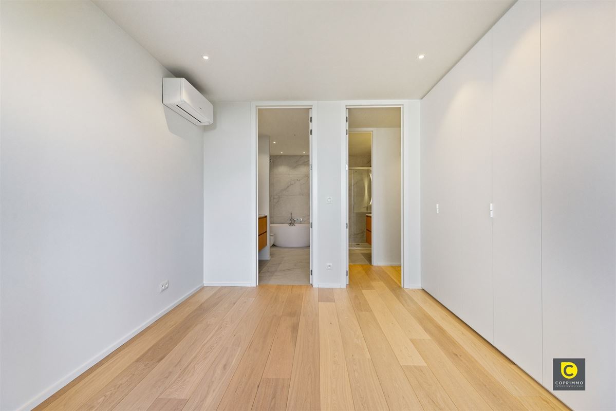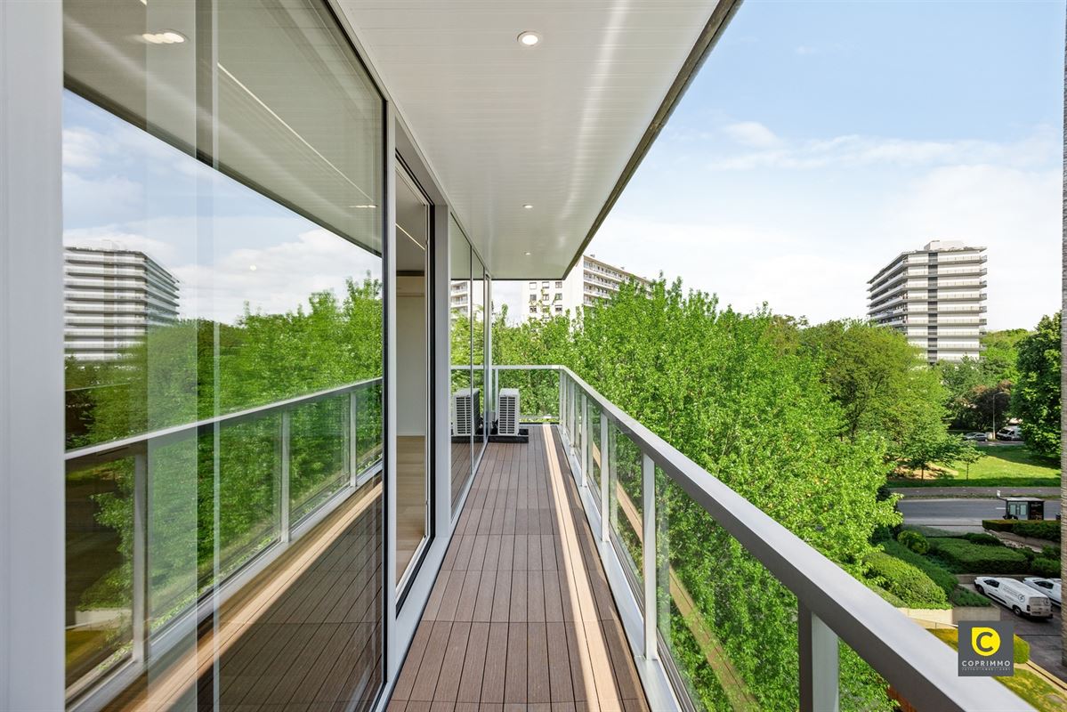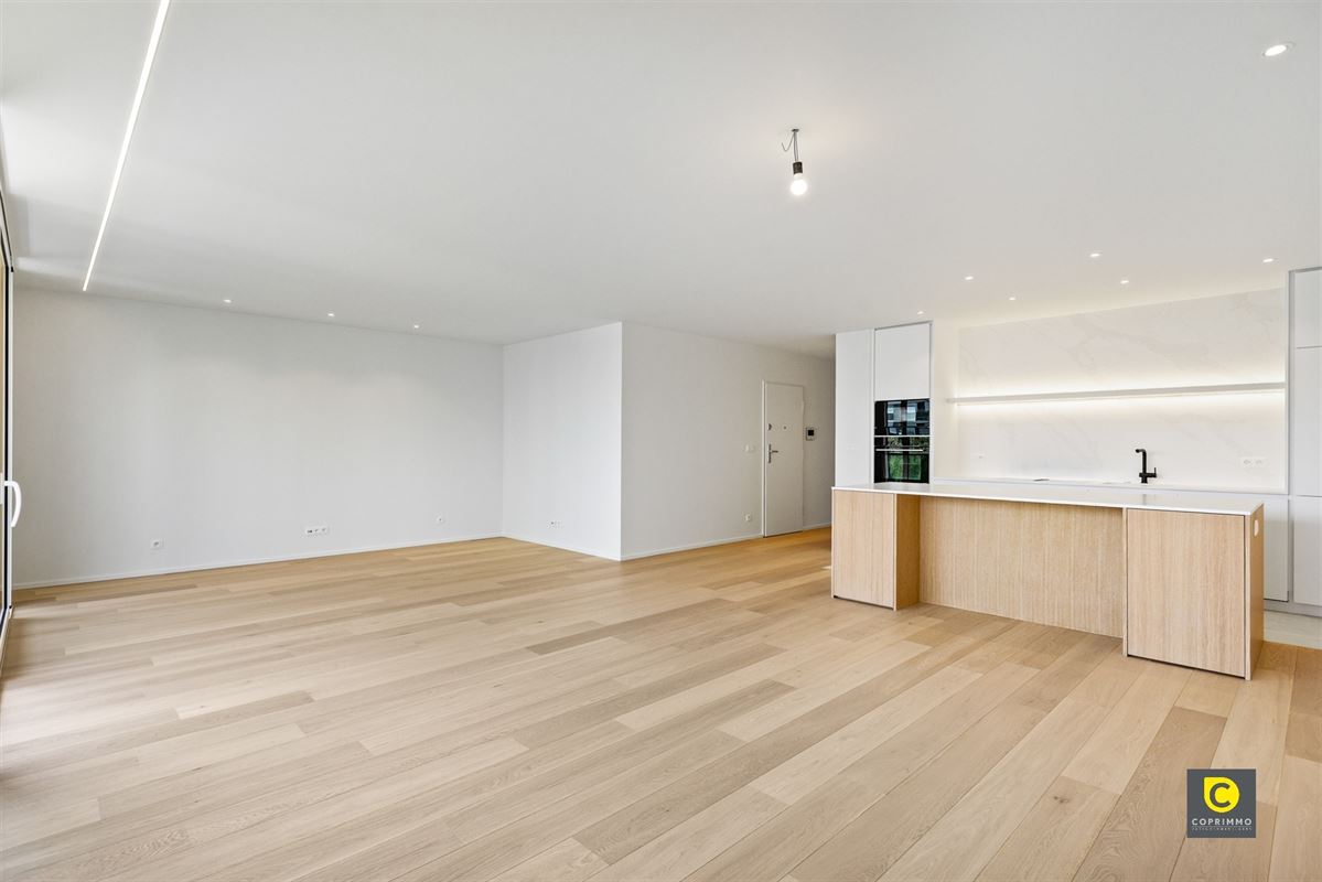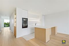 De zéér hoge afwerkingsgraad alsook het oog voor detail wordt meteen duidelijk bij het betreden van dit riant appartement via de veiligheidsdeur met videofoon. Het ingemaakt meubel met geïntegreerde led-verlichting is meteen een eerste "eye-cather". De omvangrijke leefruimte baadt in het natuurlijk licht en zet de prachtige parketvloer nog meer op de voorgrond. Onder meer de airco, de ingemaakte design spots, dito ledstrips en het groene uitzicht tille het appartement naar een geweldig hoog niveau. De oogstrelende open keuken met eiland en zitgedeelte werd wonderwel geïmplementeerd in de leefruimte en is voorzien van kwalitatieve toestellen (inductievuur met recirculatie-dampkap, oven, micro, vaatwasser, koelkast, vriezer). U kan tijdens het koken steeds genieten van uw gezin en/of gezelschap en bovendien is er aan werk- en opbergruimte hoegenaamd geen gebrek. De gemarmerde tegelvloer, het schitterende werkblad en de onderhoudsvriendelijk spatwand maakt deze tijdloze keuken helemaal af.