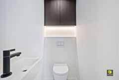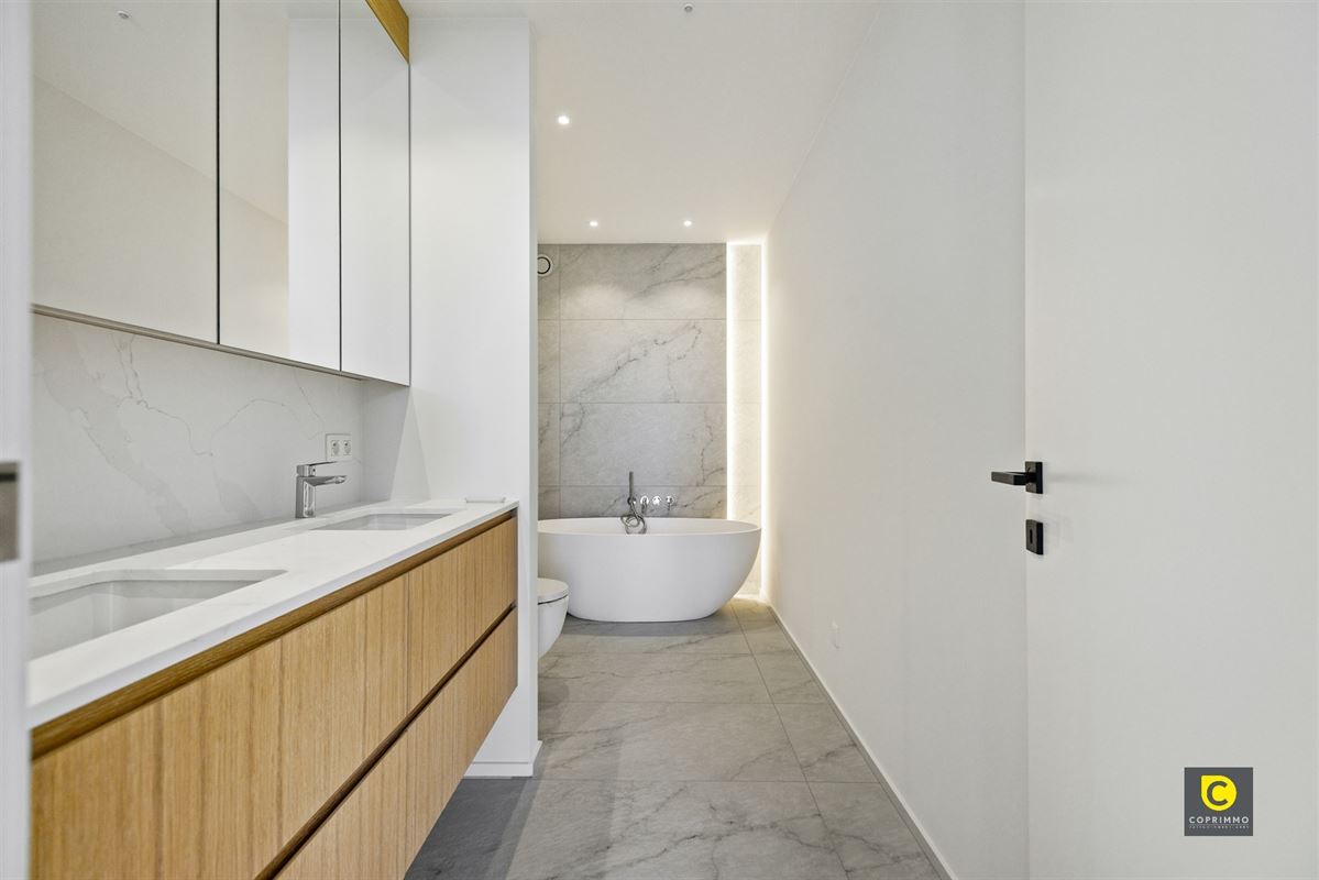 In de nachthal verschuilt zich een apart gastentoilet met handenwasser alsook de grote aparte wasruimte. De 2 omvangrijke slaapkamers (ca. 15m² & 18m²), eveneens op parket, situeren zich aan de nog rustigere achterzijde van het gebouw en zijn beiden voorzien van TV-aansluiting, airco en gordijnrails. De master omvat een ingemaakte kastenwand en een parel van een en suite badkamer waar u geheel tot rust kan komen in het losstaande design ligbad met watervalkraan. Uiteraard is er een dubbel wasmeubel met spiegelkast voorzien en ook aan een handdoek-radaitor werd gedacht. Het Japans toilet vormt de kers op de rijkgevulde taart. Zowel in de badkamer alsook in de douchekamer is het tegelwerk een streling voor het oog. De douchekamer is uitgerust met wasmeubel en natuurlijk ook met een weelderige inloop-/regendouche.