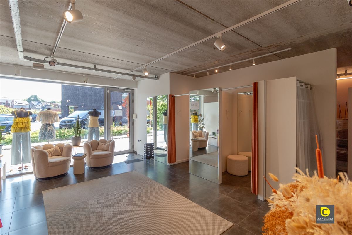 Aan de voorzijde bevindt zich de ruime commerciële ruimte met grote raampartijen en een verzorgde uitstraling die zorgt voor maximale visibiliteit.