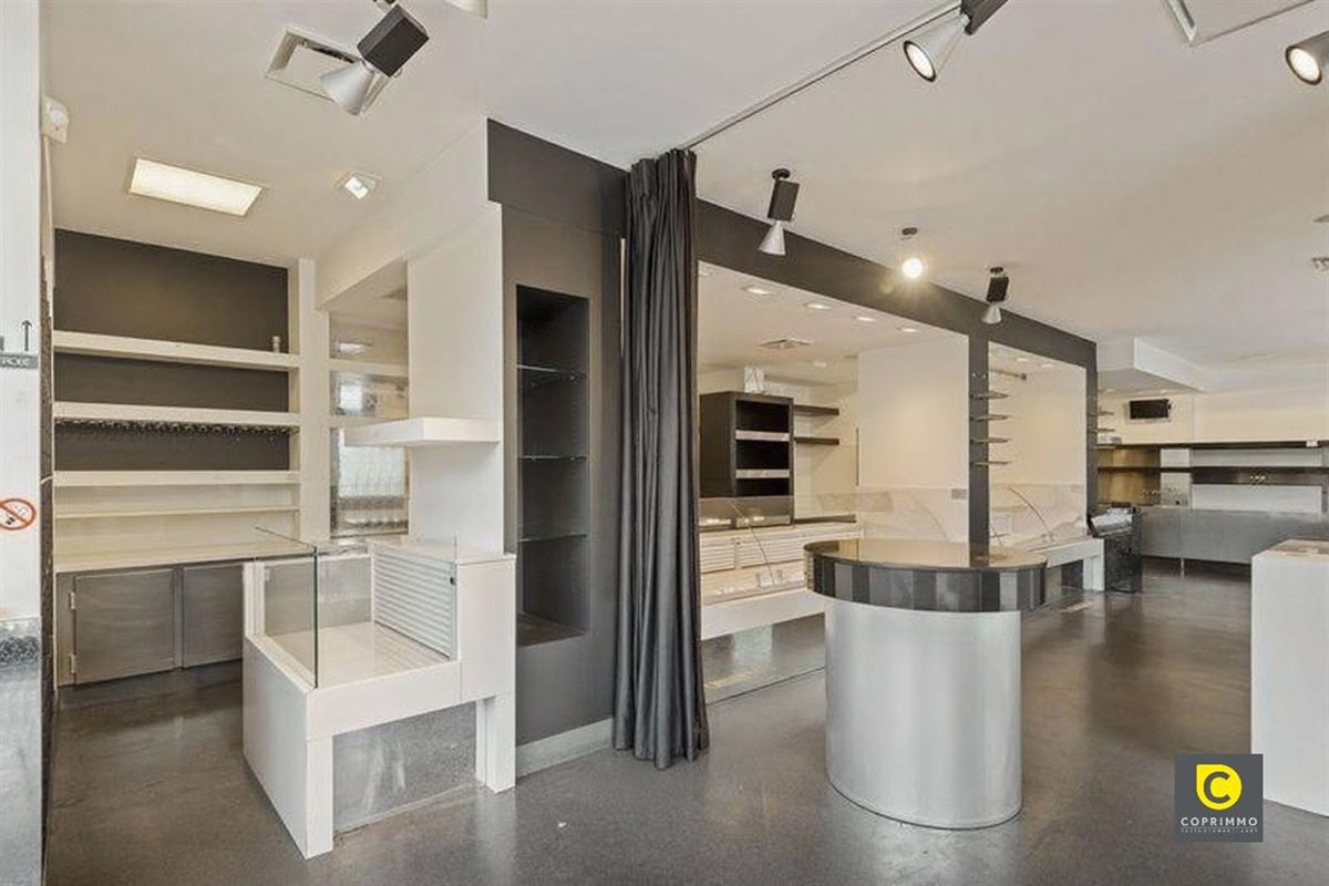 Via een trap aan het winkelgedeelte bereikt u een tweede kantoorruimte en de kelder, uitgerust met een koelcel, afwasruimte en ruime berging.