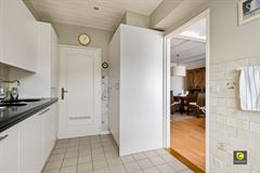 De aparte keuken biedt voldoende kastruimte en werd bovendien aangevuld met een handige bergruimte met aansluiting voor wasmachine en droogkast.