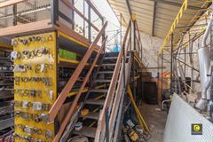 Aan werk- alsook opslagruimte is hoegenaamd geen gebrek. Met een handelspand van deze oppervlakte kan er steeds ingedeeld worden naarmate de eigen noden. De verhouding tussen werk- en opslagruimte, kantoren, sanitair, ... kan geheel naar believen worden ingevuld. Uiteraard heeft men momenteel geopteerd voor een groot overwicht op vlak van werkruimte i.f.v. het onderhoud van de wagens.
