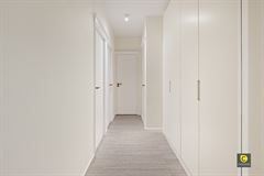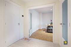 Bij binnenkomst betreedt u een ruime en lichte inkomhal, voorzien van een praktische ingemaakte vestiaire kast. Hier vindt u voldoende opbergruimte en meteen een gevoel van openheid dat doorheen het appartement doorgetrokken wordt.