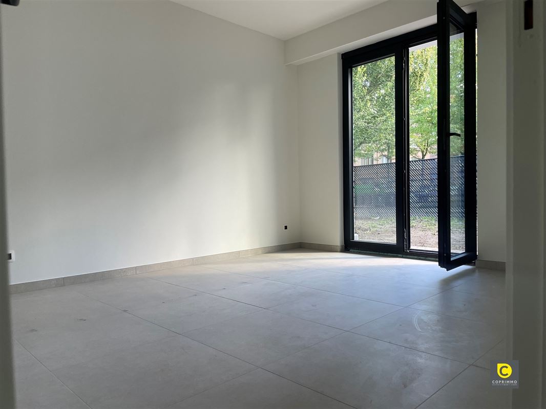 De 2 slaapkamers bevinden zich achteraan aan het appartement en geven toegang tot de privatieve tuin. Dankzij de raampartijen tot op de grond komt er veel natuurlijk lichtinval binnen.