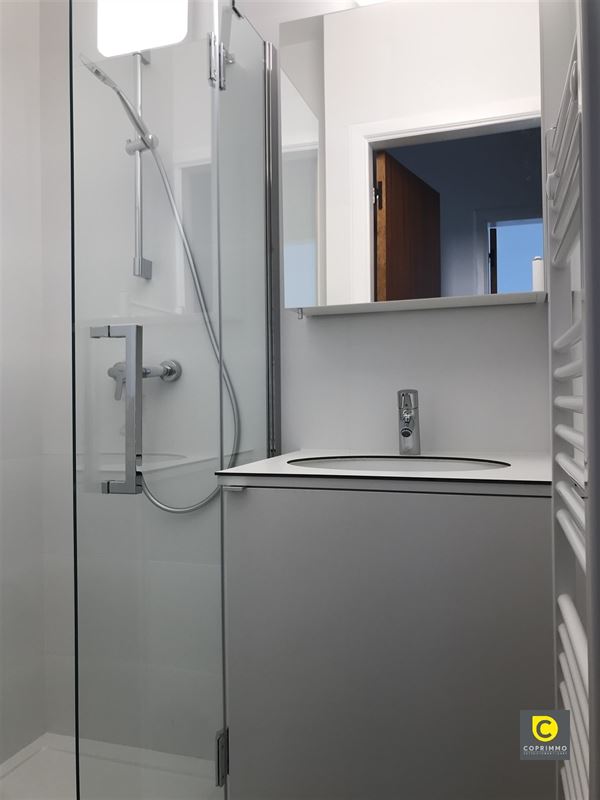 De functionele badkamer is voorzien van een inloopdouche, handdoekradiator en enkelvoudig lavabo-meubel met bijhorende spiegelkast. De ruime slaapkamers (10 en 16m²) zijn gelegen aan de achterzijde van het appartement waar u geniet van een groen uitzicht in alle rust.