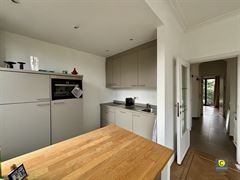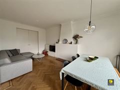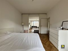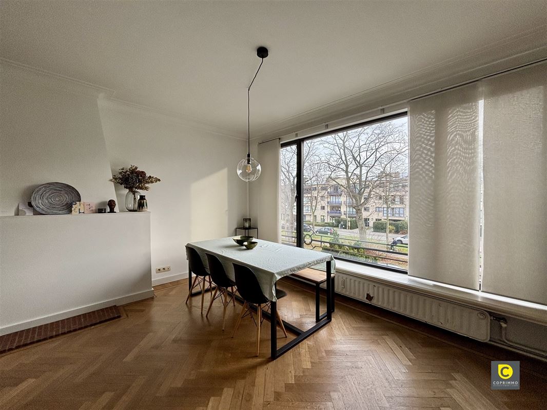 De ruime, lichte leefruimte is afgewerkt met een mooie parketvloer en geniet van een overvloed aan natuurlijk licht door de grote raampartijen.