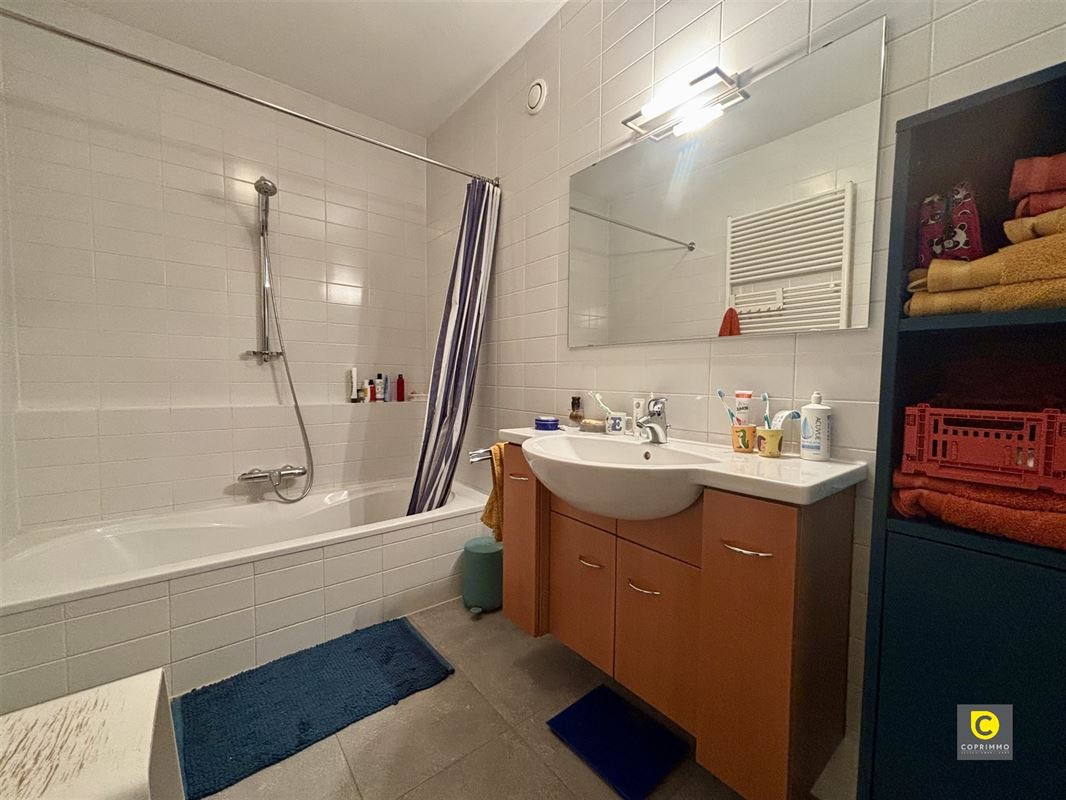 U betreedt het appartement via een ruime inkomhal met parketvloer. Deze is uitgerust met een veiligheidsdeur, ingemaakte vestiairekasten en een videofoon, wat zorgt voor comfort en veiligheid vanaf het eerste moment.