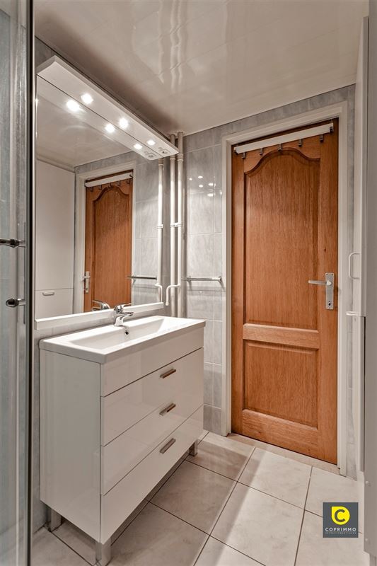 Via de nachthal heeft u toegang tot het toilet, een ingebouwde vestiaire kast, de twee ruime slaapkamers en de badkamer met een lavabomeubel, douche en aansluiting voor een wasmachine.