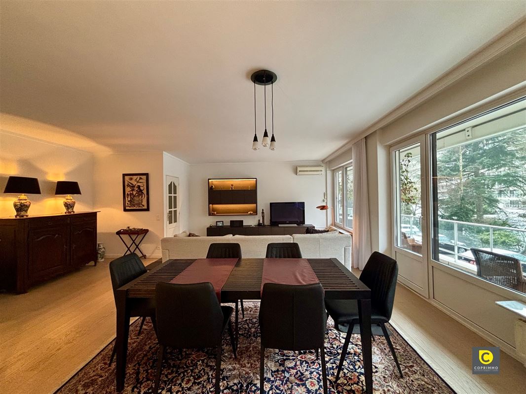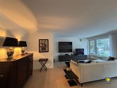 De leefruimte op parket kan opgedeeld worden in een eetkamer en salon.
