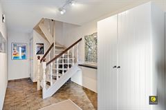 In de inkomhal wordt u onmiddellijk verwelkomd door de landelijke stijl die deze woning uitstraalt. Er is voldoende plaats voor het plaatsen van een vestiairekast en er bevindt zich ook een gastentoilet.Achteraan bevindt zich een ruime, multifunctionele plaats die toegang geeft tot de tuin en momenteel functie doet als zeer handige wasplaats met handige spoelbak. Van hieruit kan u ook in de garage die nog voldoende ruimte heeft voor fietsen en dergelijke.