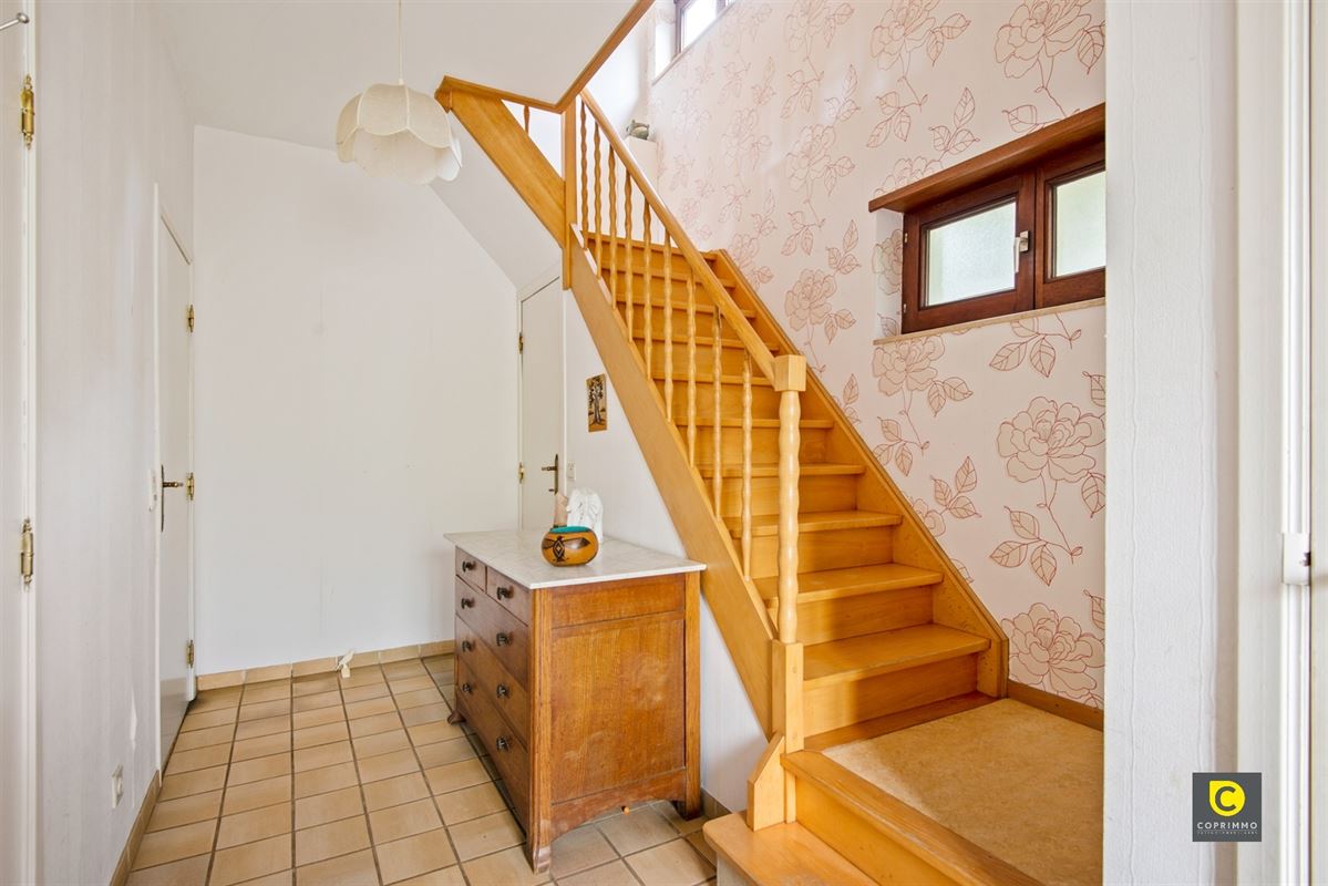 U betreedt de woning via een ruime inkomhal met vestiaire kast die toegang biedt tot de gezellige leefruimte en een bureauruimte die langs de voorzijde gelegen is. De lichte woonkamer met open haard en grote raampartijen creëert een aangename sfeer en biedt een prachtig uitzicht op de tuin.