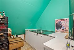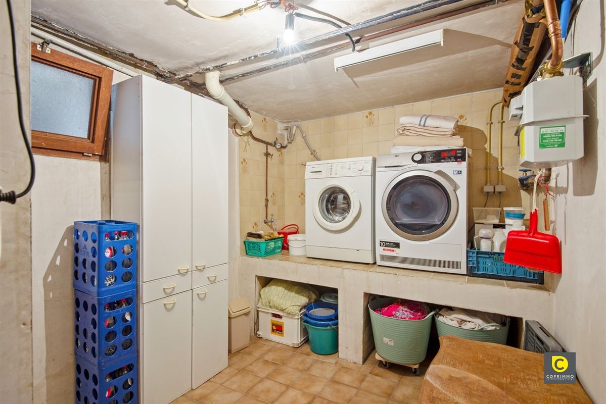 In de kelderruimte bevindt zich momenteel de wasruimte. Er is nog voldoende plaats om bijvoorbeeld uw was te drogen te hangen of te gebruiken als opbergplaats.