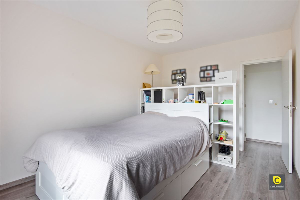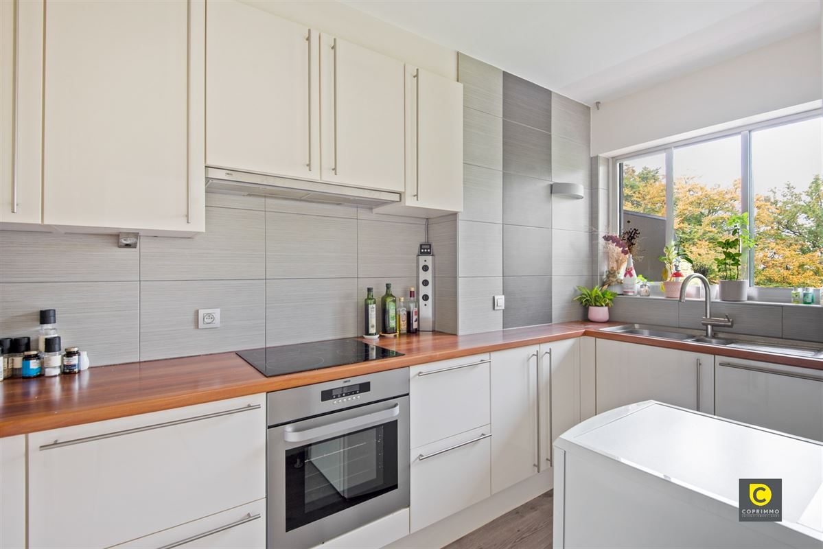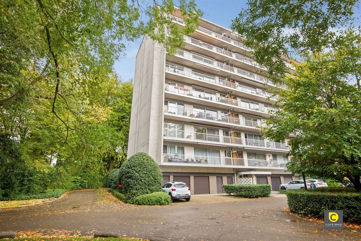 U betreedt het appartement via de inkomhal die toegang biedt tot de ruime en lichtrijke leefruimte. Vanuit elke kamer geniet u van een groen uitzicht, wat zorgt voor een rustgevend woongevoel. De praktisch ingerichte keuken is voorzien van de nodige toestellen en voldoende kastruimte. Over de volledige lengte van het appartement strekt zich een groot terras uit, ideaal om buiten te ontspannen.