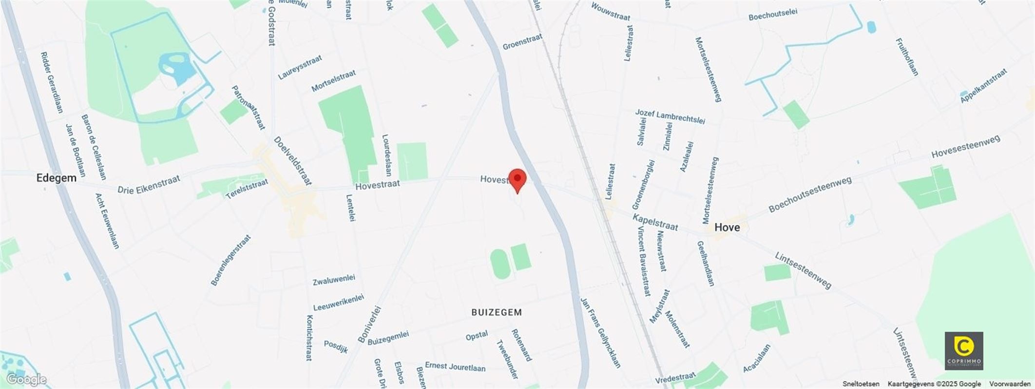 Op een rustige, groene ligging op de grens van Edegem en Hove vinden we dit aangename appartement terug. Dankzij de centrale ligging geniet u van een uitstekende bereikbaarheid: winkels, scholen, openbaar vervoer (bus en trein) en belangrijke invalswegen bevinden zich op korte afstand.