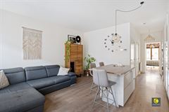 De lichtrijke leefruimte met open keuken wordt overspoeld door natuurlijk daglicht dankzij de grote raampartijen. De volledig uitgeruste keuken met centraal keukeneiland combineert elegantie met functionaliteit. Het eiland is voorzien van een geïntegreerde eetzone perfect voor een snel ontbijt of een gezellig diner. Slim geplaatste ingemaakte kasten bieden bovendien maximale opbergruimte.