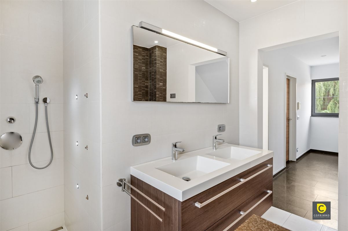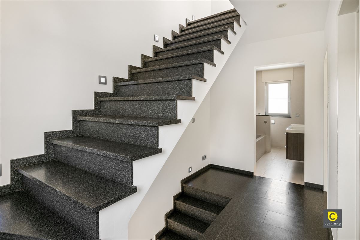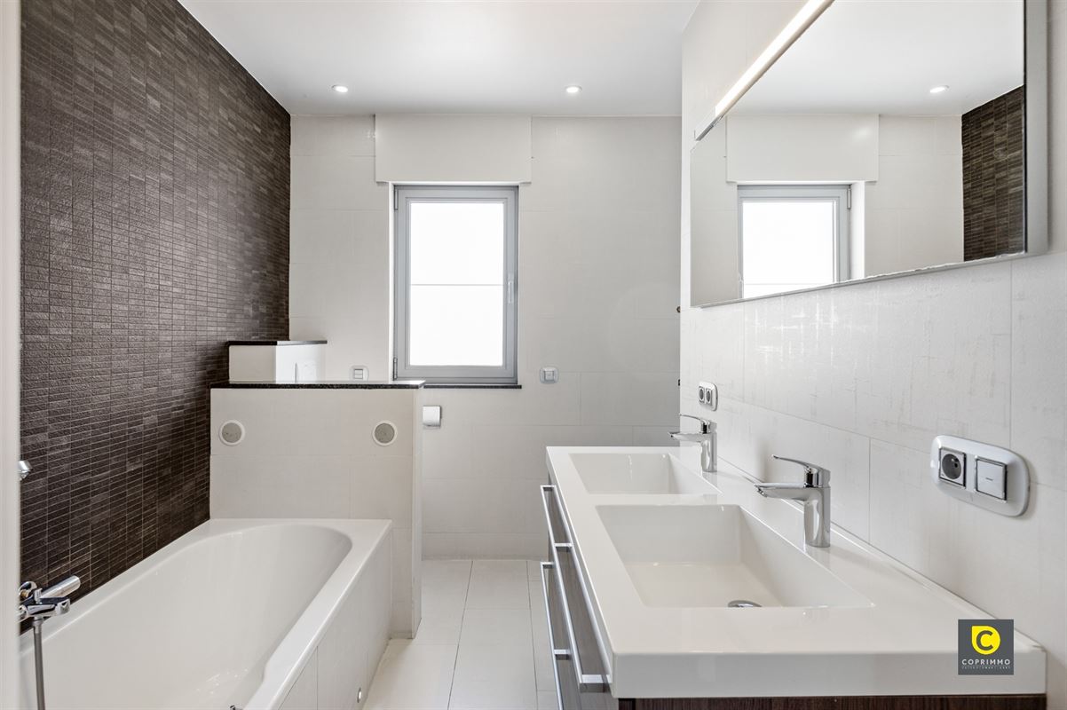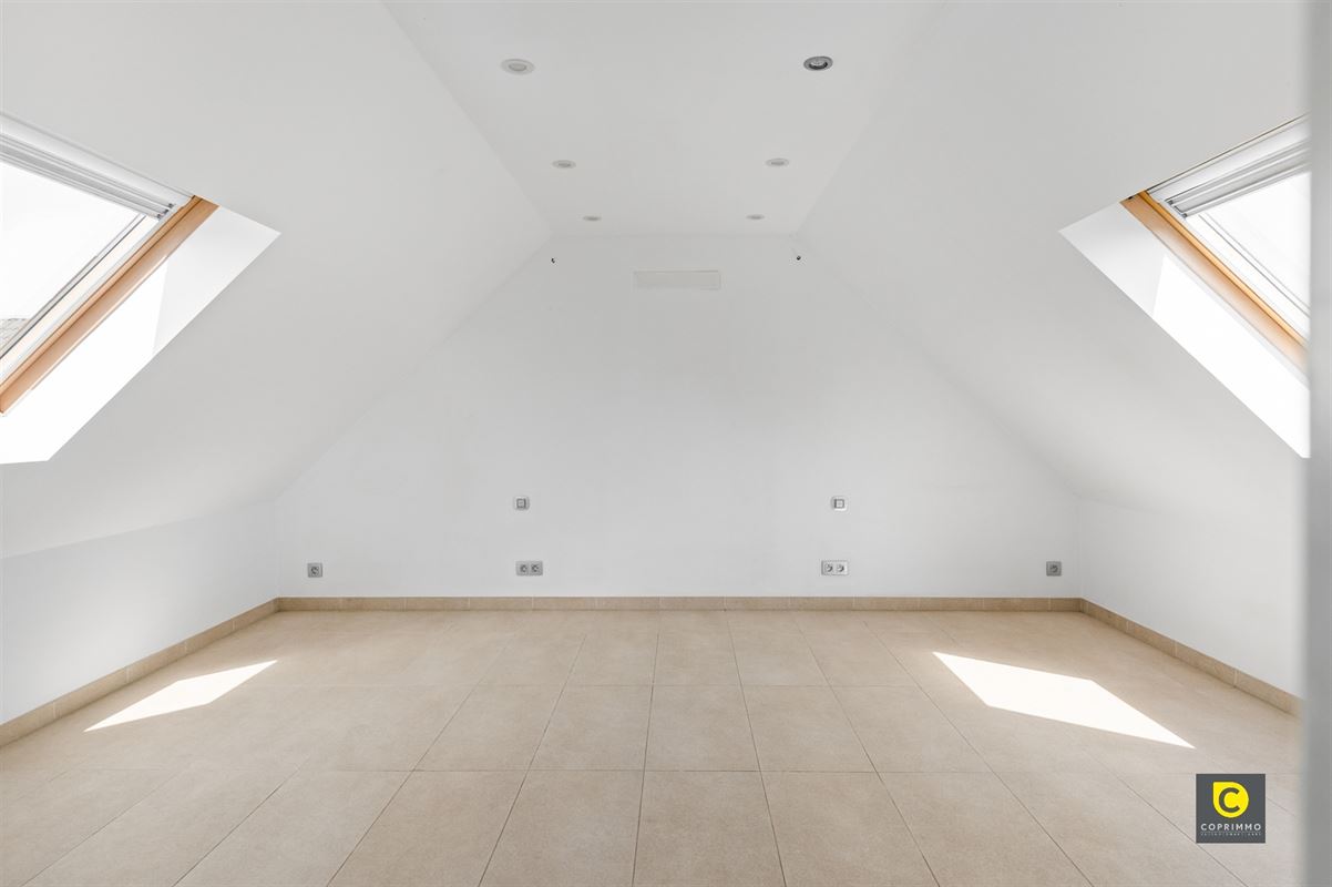 Op de eerste verdieping bevinden zich twee volwaardige slaapkamers, telkens met voldoende lichtinval en ruimte. De stijlvolle badkamer is uitgerust met een dubbel badkamermeubel, toilet, ligbad en inloopdouche, wat zorgt voor een gevoel van pure ontspanning. De tweede verdieping herbergt nog een ruime derde slaapkamer, die zich perfect leent als masterbedroom, bureau of hobbyruimte.