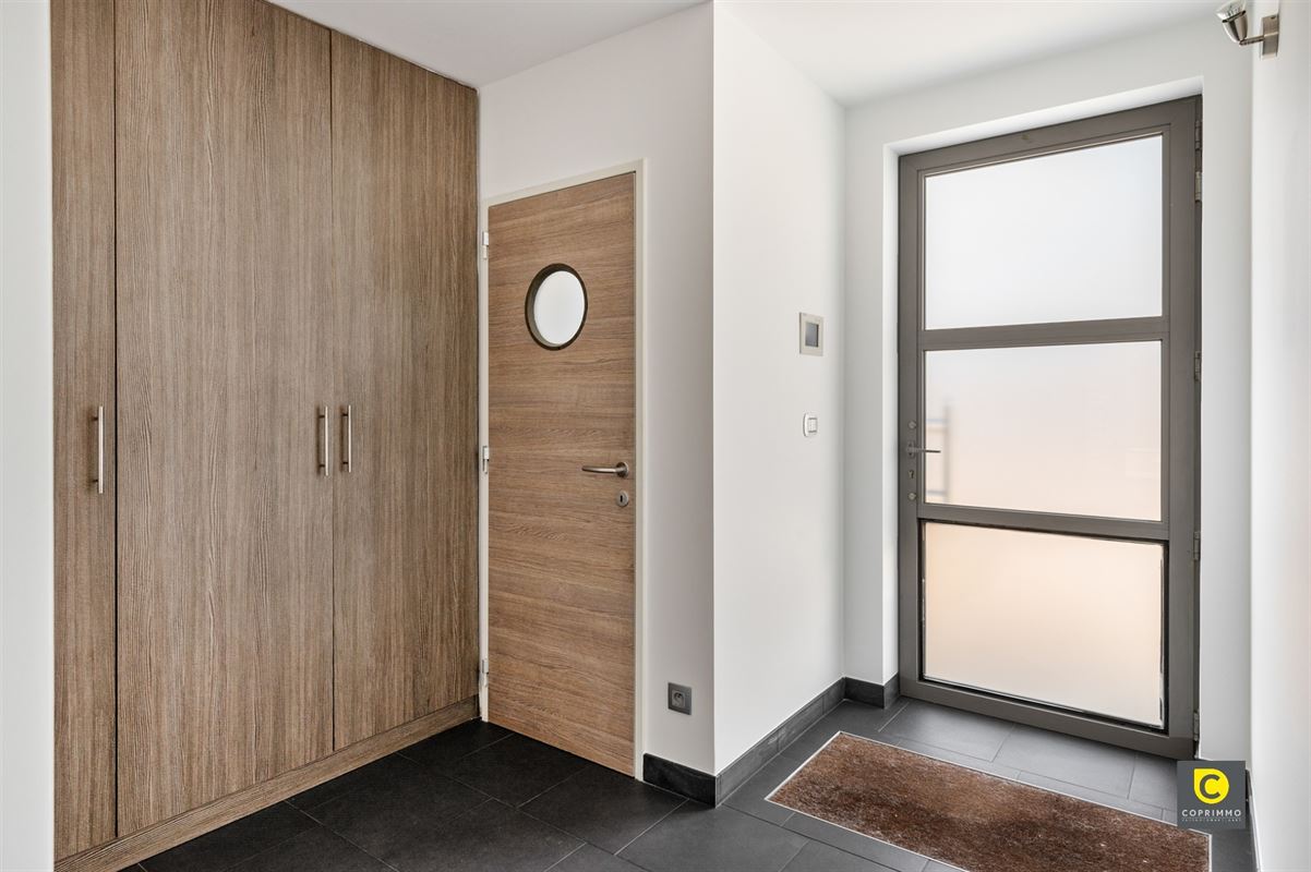 Bij het betreden van de woning komt u terecht in een verzorgde inkomhal met een apart gastentoilet met handenwasser en een ingemaakte vestiairekast. Aansluitend bevindt zich een praktische berging, uitgerust met de technische installaties, aansluitingen voor wasmachine en droogkast, en extra opbergruimte ideaal voor wie houdt van orde en functionaliteit.