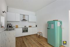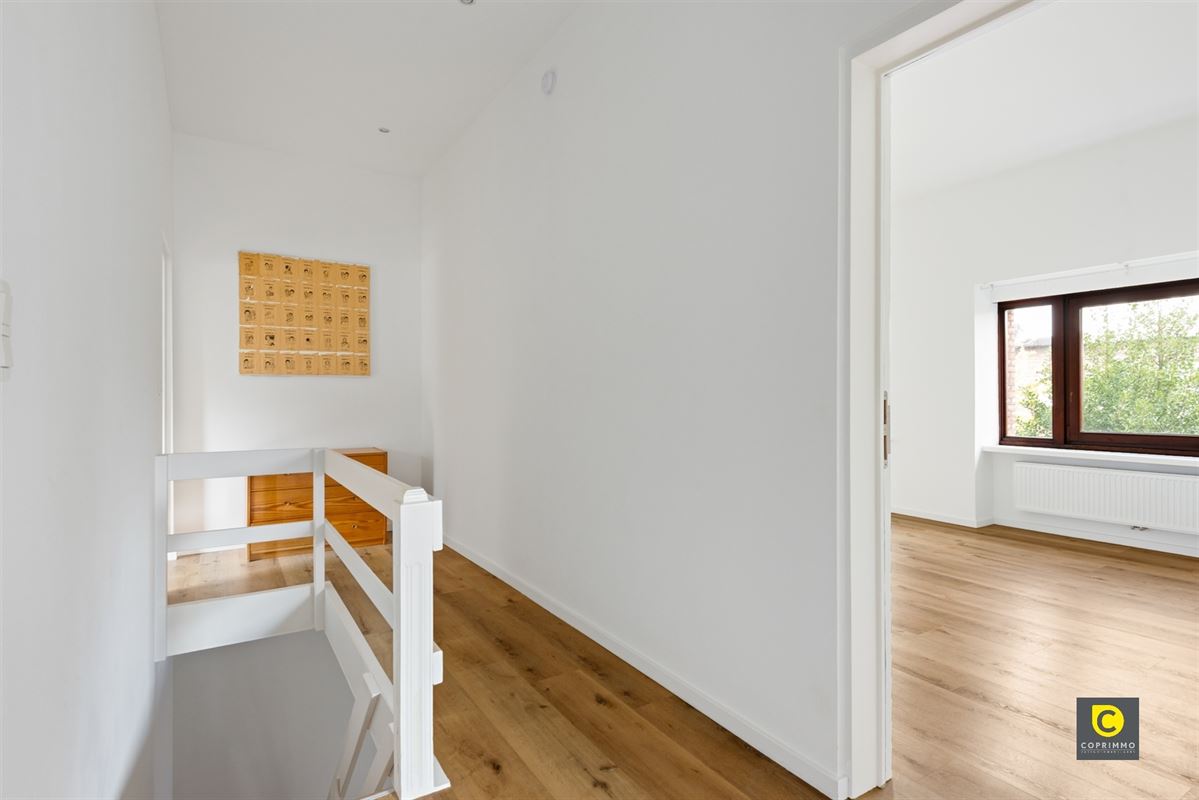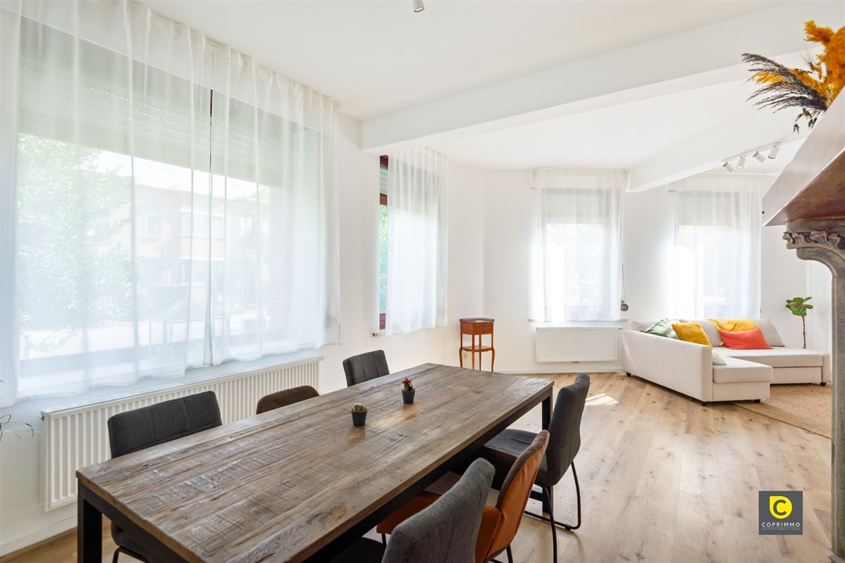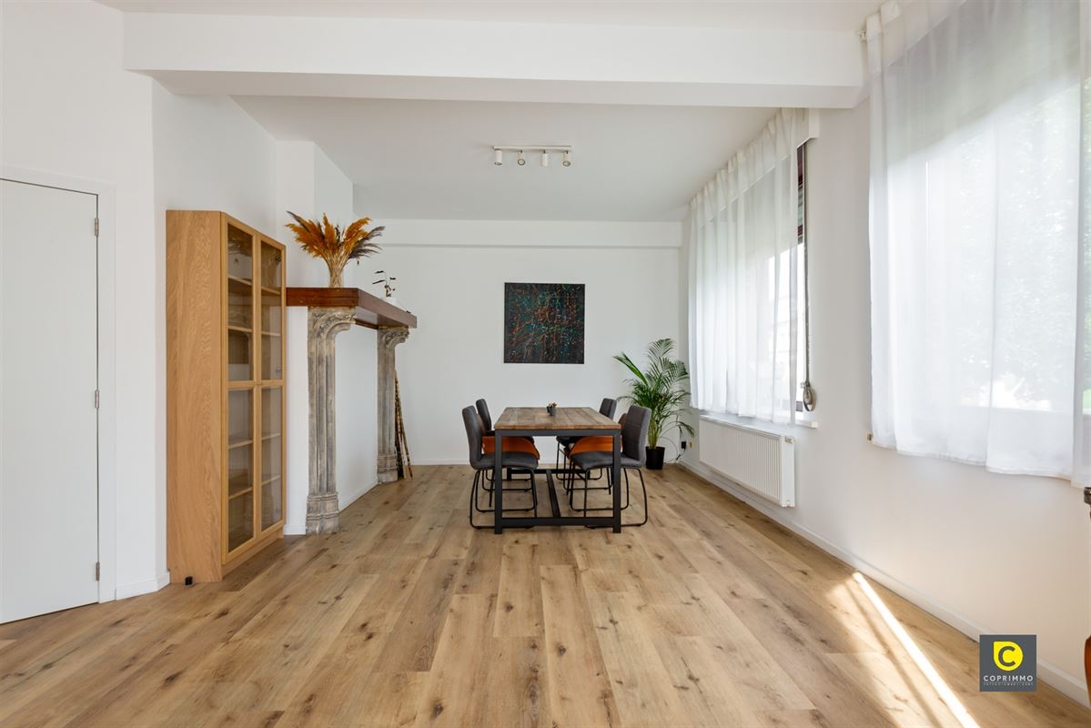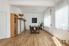 U betreedt de woning via de aparte inkomhal waarbij de inbouwspots de sierlijke houten trap mooi accentueren. De ruime en lichtrijk leefruimte met hoge plafonds geniet veel natuurlijk licht, kijkt uit op het groen in de voortuin en is geheel voorzien van rolluiken. De organische indeling leent zich perfect voor een volwaardige eetkamer in combinatie met een gezellig salongedeelte. De prachtige, authentieke mantel van de voormalige openhaard tilt het cachette van de woonkamer naar een nog hoger niveau. Aanpalend vindt u de smaakvolle keuken die voorzien is van een inductievuur, dampkap, combi-oven, vaatwasser en anderhalve lavabo. Aan werk- en "soft-close" opbergruimte is hoegenaamd geen gebrek. Bovendien is de keuken dermate ruim dat ook hier en tafel kan worden geplaatst. De aparte wasruimte is enorm praktisch en biedt veel extra bergruimte. Ook het toilet met handenwasser is apart ondergebracht.