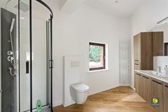 Via de nachthal bereikt u de 3 omvangrijke slaapkamers. In elke kamer kan er met sprekend gemak een dubbel bed worden geplaatst in combinatie met een ruime kleerkast, bureau, commode,... De rustieke en onderhoudsvriendelijke badkamer is uitgerust met een inloop-/regendouche, dubbel wasmeubel met extra veel kastruimte, handdoek-radiator, toilet en geïntegreerde verlichting. Het raam in de badkamer is optimaal voor de verluchting, desondanks is uw privacy 100% gewaarborgd.