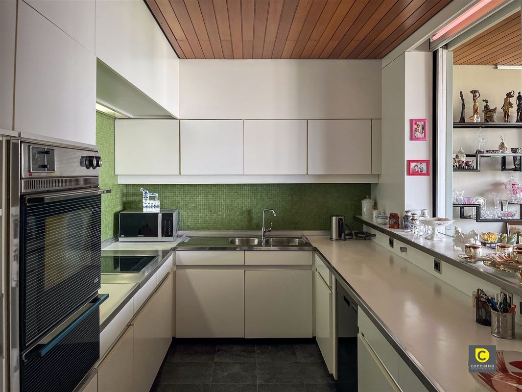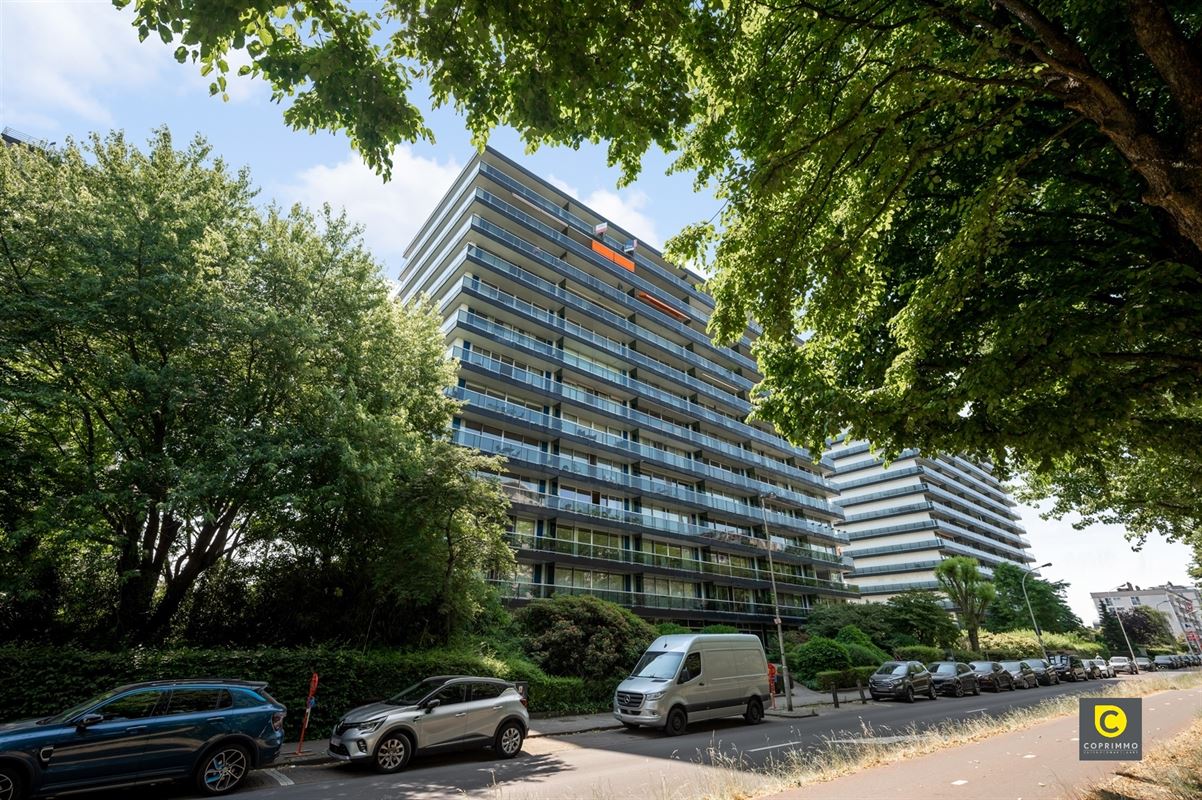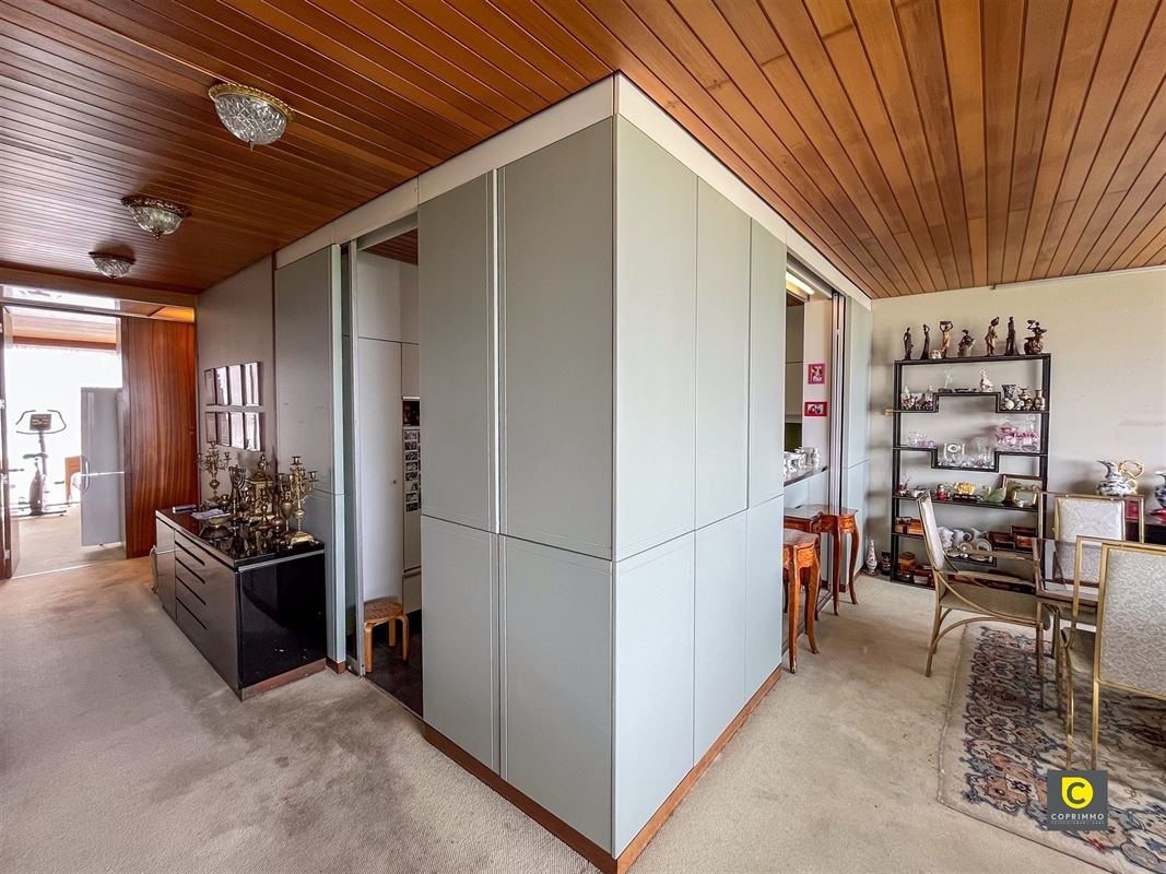 U betreedt dit charmant appartement via de inkomhal met veiligheidsdeur en parlofoon. In de omvangrijke leefruimte valt het oog meteen op de grote raampartijen die de prachtige natuurlijke lichtinval in de verf zet en de aandacht vestigt op het fenomenale, panoramische uitzicht over Antwerpen stad. De gerieflijke half open keuken werd mooi geïntegreerd in de leefruimte, kan geheel afgesloten worden en is voorzien van een keramisch vuur, dampkap, oven, vaatwasser, koelkast en dubbele lavabo. Ook een open keuken met eiland is makkelijk te verwezenlijken.
