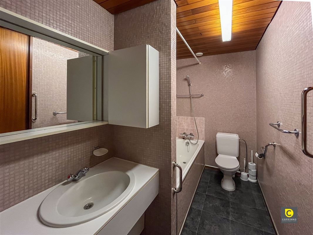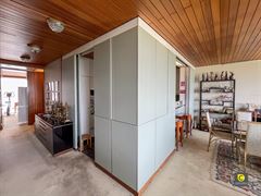 De "vintage" nachthal met retro lichtstraat bulkt van de ingemaakte kasten en staat in verbinding met de badkamers, de slaapkamers en het aparte toilet met handenwasser. De grote badkamer met mozaïek wandtegeltjes omvat een ligbad/douche combinatie, een dubbel wasmeubel met spiegelkast en een tweede toilet. Deze lijn wordt doorgetrokken in de douchekamer die tevens fungeert als aparte wasruimte. Ook hier vindt u een wasmeubel met spiegelkast en uiteraard ook een douche.