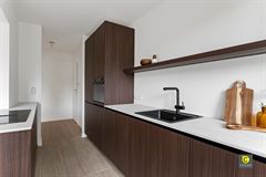 De uitmuntende afwerking wordt meteen duidelijk bij het betreden van het appartement via de inkomhal met veiligheidsdeur, videofoon en prachtige natuurlijke eik parket die naadloos doorloopt in de leefruimte en perfect aansluit bij de travertin tegelvloer van keuken, badkamer en toilet. De lijn trekt zich ook door in de lichtrijke leefruimte die uitkijkt op het groen en voorzien is van design lichtrails. De oogstrelende notelaar keuken met kookeiland en zitgedeelte vormt het bruisende hart en is uitgerust met kwalitatieve toestellen (inductievuur met geïntegreerde recuperatiedampkap, koelkast, vriezer, vaatwasser). De ingewerkte ledverlichting zet deze sublieme keuken letterlijk en figuurlijk in de spotlight en bovendien geniet u 5 jaar garantie op toestellen en 10 jaar op kasten.