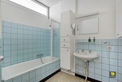 De badkamer is voorzien van een ligbad en een lavabo meubel. Het toilet is apart.