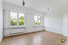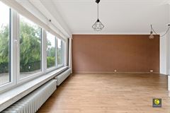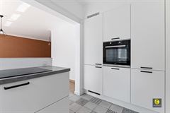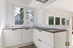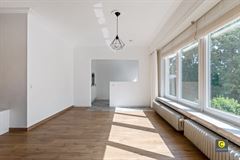 Via de inkomhal komt u in de ruime en lichtrijke leefruimte, afgewerkt met een warme vloer die een gezellige sfeer uitstraalt. Grote ramen zorgen voor een overvloed aan natuurlijk licht en bieden uitzicht op het omliggende groen en de bomen rondom het perceel. De open keuken is modern ingericht met strakke witte kasten en een stijlvol werkblad. De stenen vloer voegt een extra toets toe en is tegelijk bijzonder praktisch en onderhoudsvriendelijk.