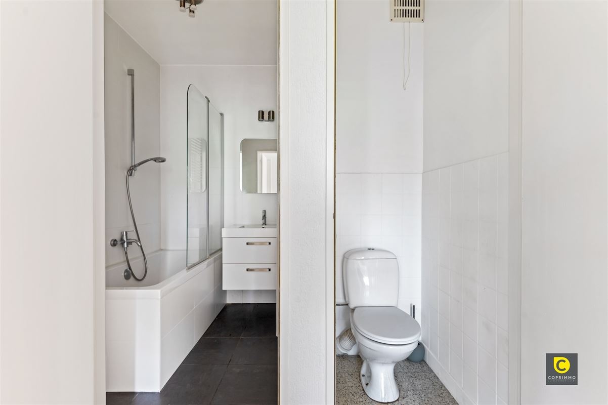 Het appartement beschikt over twee slaapkamers. De grote master bedroom biedt voldoende ruimte voor een dubbel bed en extra meubilair. De tweede kamer is voorzien van ingemaakte kasten en geeft directe toegang tot het terras, ideaal als kinderkamer, dressing, bureau of logeerkamer. De badkamer is uitgerust met een douche-badcombinatie en een aansluiting voor een wasmachine. Een apart toilet bevindt zich eveneens in de hal, wat bijdraagt aan het comfort voor bewoners en gasten.