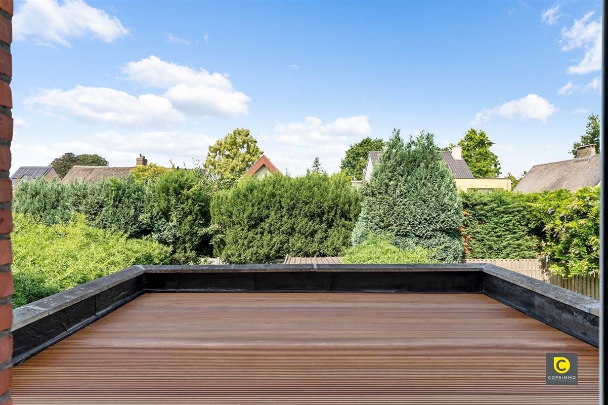 Het westgerichte terras vormt een aangename buitenruimte waar u in de namiddag en avond van de zon kunt genieten, met zicht op de omliggende bomen. Een privatieve kelderberging biedt extra opslagruimte, ideaal voor koffers, voorraad of seizoensgebonden spullen.