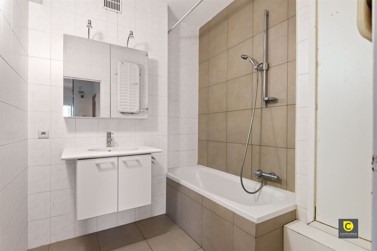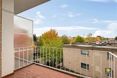 U betreedt het appartement via een inkomhal met handige vestiairekast. De mooie parketvloer loopt door in de leefruimte. Een dubbele glazen deur brengt u naar het lichtrijke woongedeelte, waar grote ramen zorgen voor een aangename sfeer.