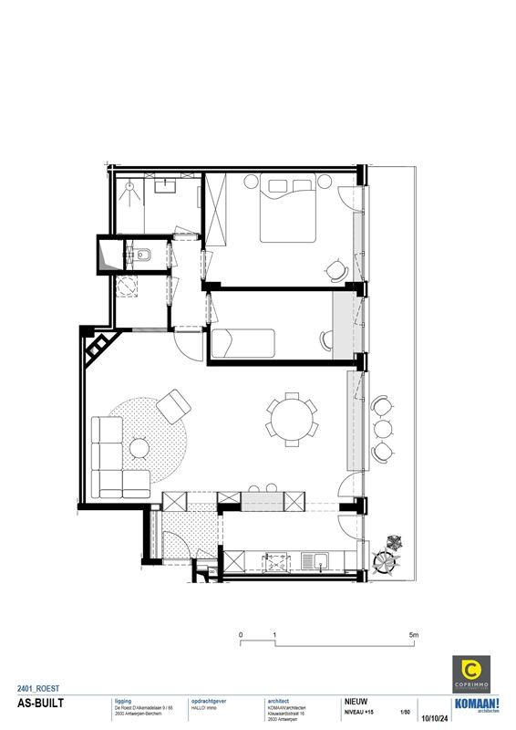 Het omvangrijke (zuid)west-geörienteerd terras strekt zich uit over de hele breedte van het appartement. Hier kan u volledig tot rust komen in een groene omgeving, al dan niet vergezeld van een goed glas wijn of een lekkere maaltijd. De kelderberging is inbegrepen. Fietsen kunnen zowel onder- alsook bovengronds gestald worden.