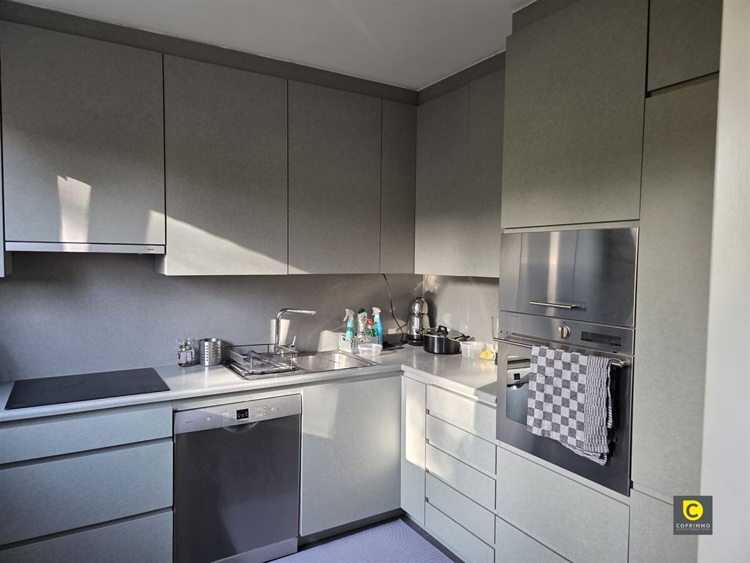 Op de eerste verdieping bevindt zich de lichtrijke leefruimte met parketvloer, een volledig geïnstalleerde gesloten keuken en een apart toilet met handenwasser.